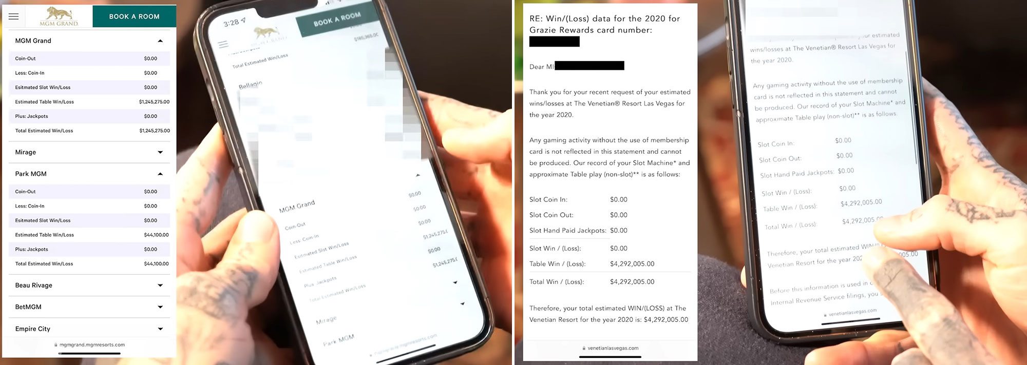 Just when you think it’s a hoax, Mikki Mase steps up and reveals all to the Full Send crew. He opened his accounts on his mobile phone and allowed their cameraman to capture his tax certificates at MGM Casinos and at the Venetian.