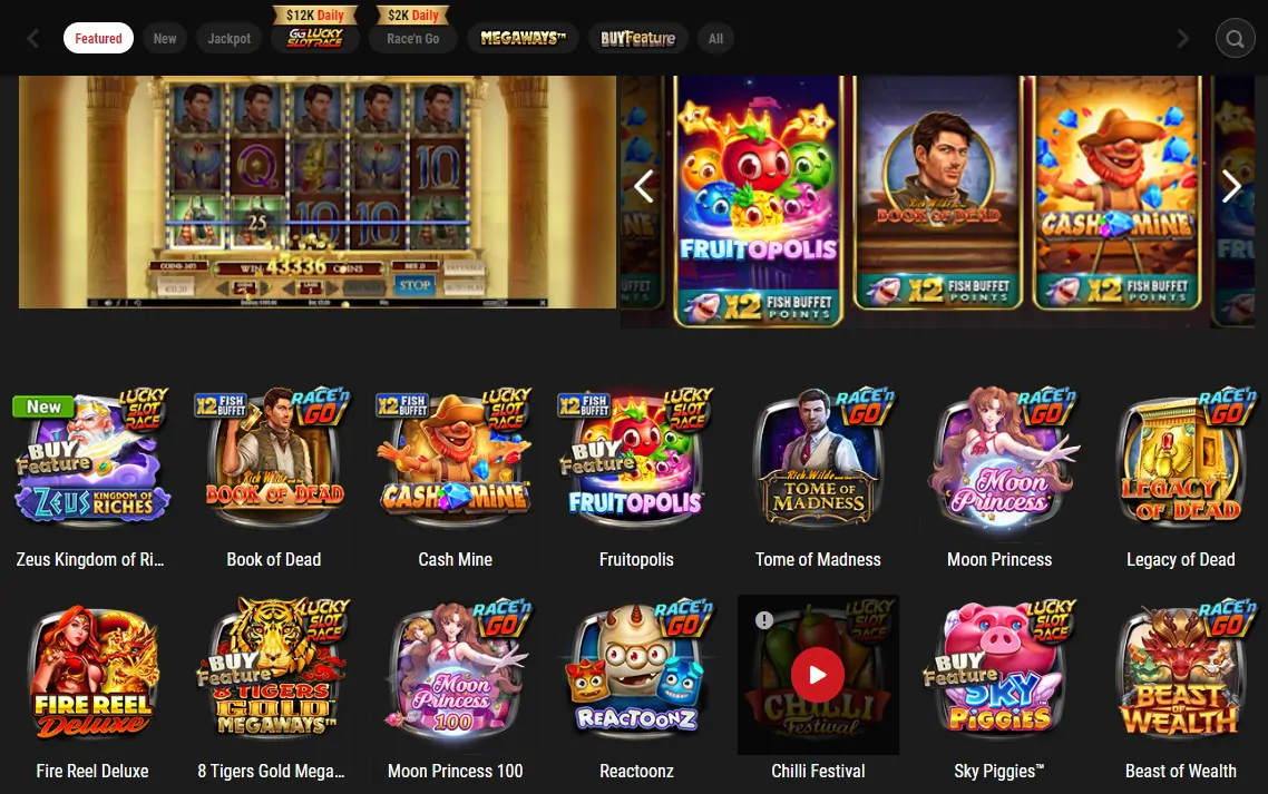There is a decent selection of online slot games up for grabs. You’ll instantly recognize many of Play’n GO’s titles, like Book of Dead and Reactoonz. There is also a stack of titles from Pragmatic Play and other well-known studios. Some of these titles fall part of the Race & Go $2K Daily Jackpot. Other titles form part of GGLucky Slot Race, where you could be in the running to win your portion of $12K daily.