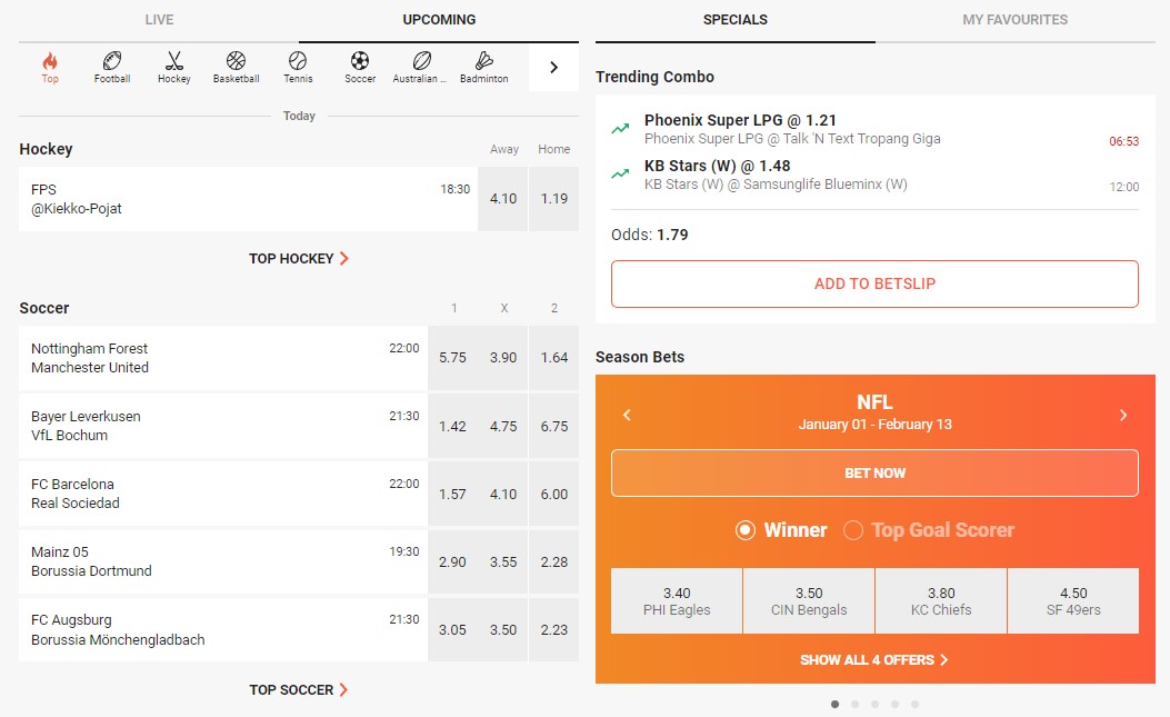 There are so many forms of sports betting available on the platform. Place single bets, parlays (accas), handicap bets, prop bets, teaser bets, and points spread across 35+ categories and thousands of markets.